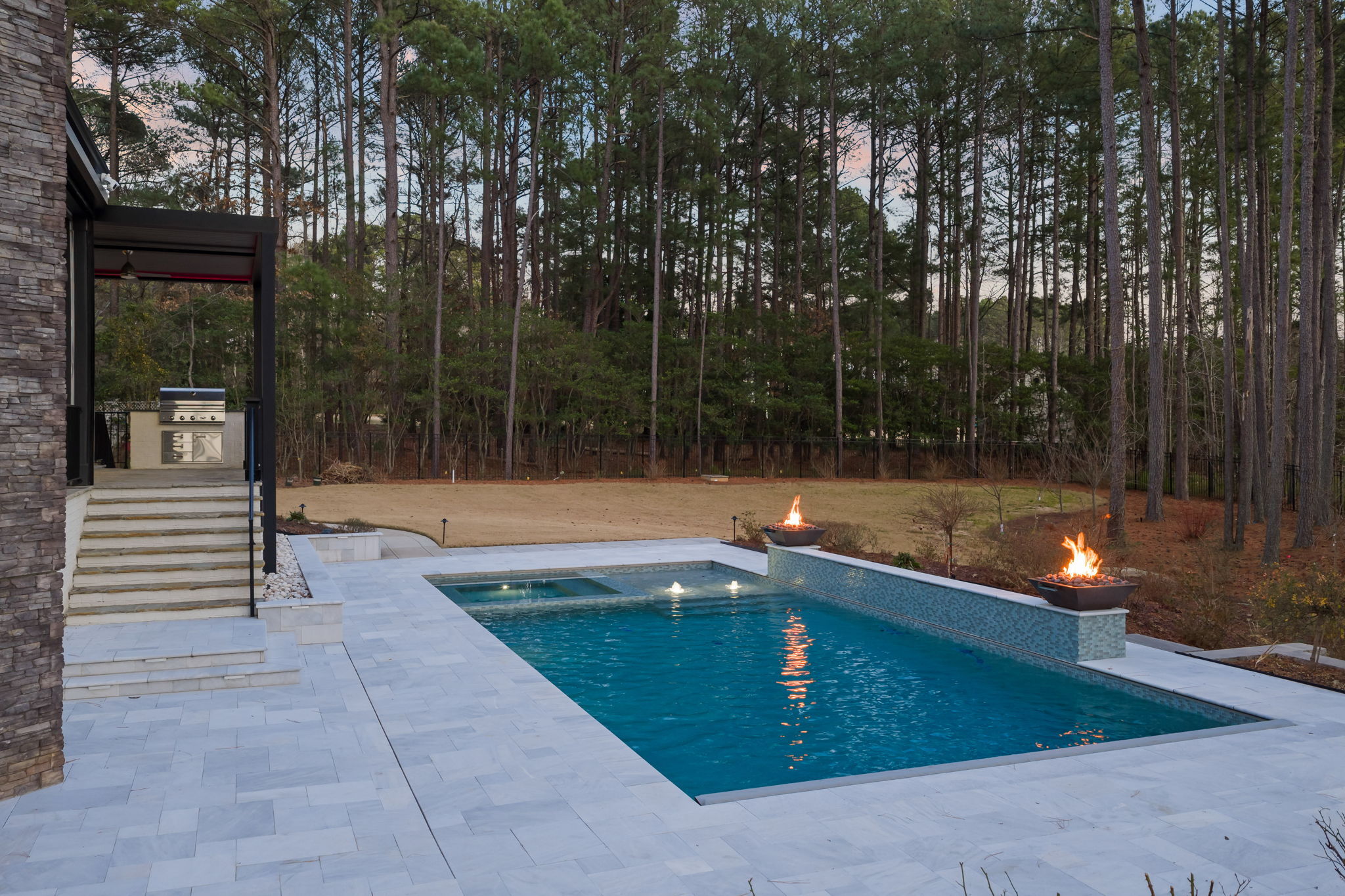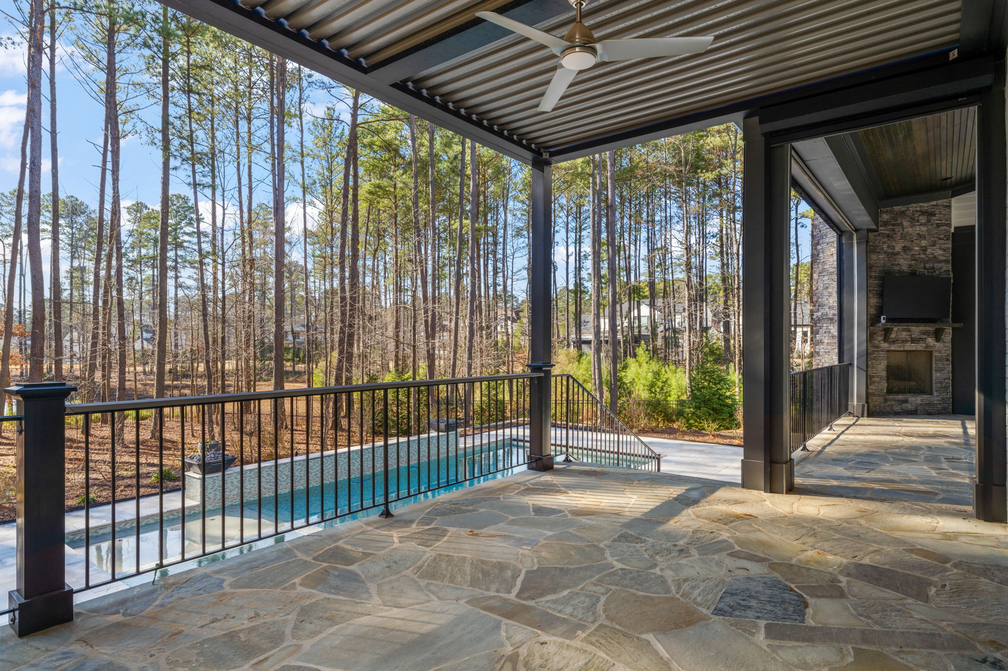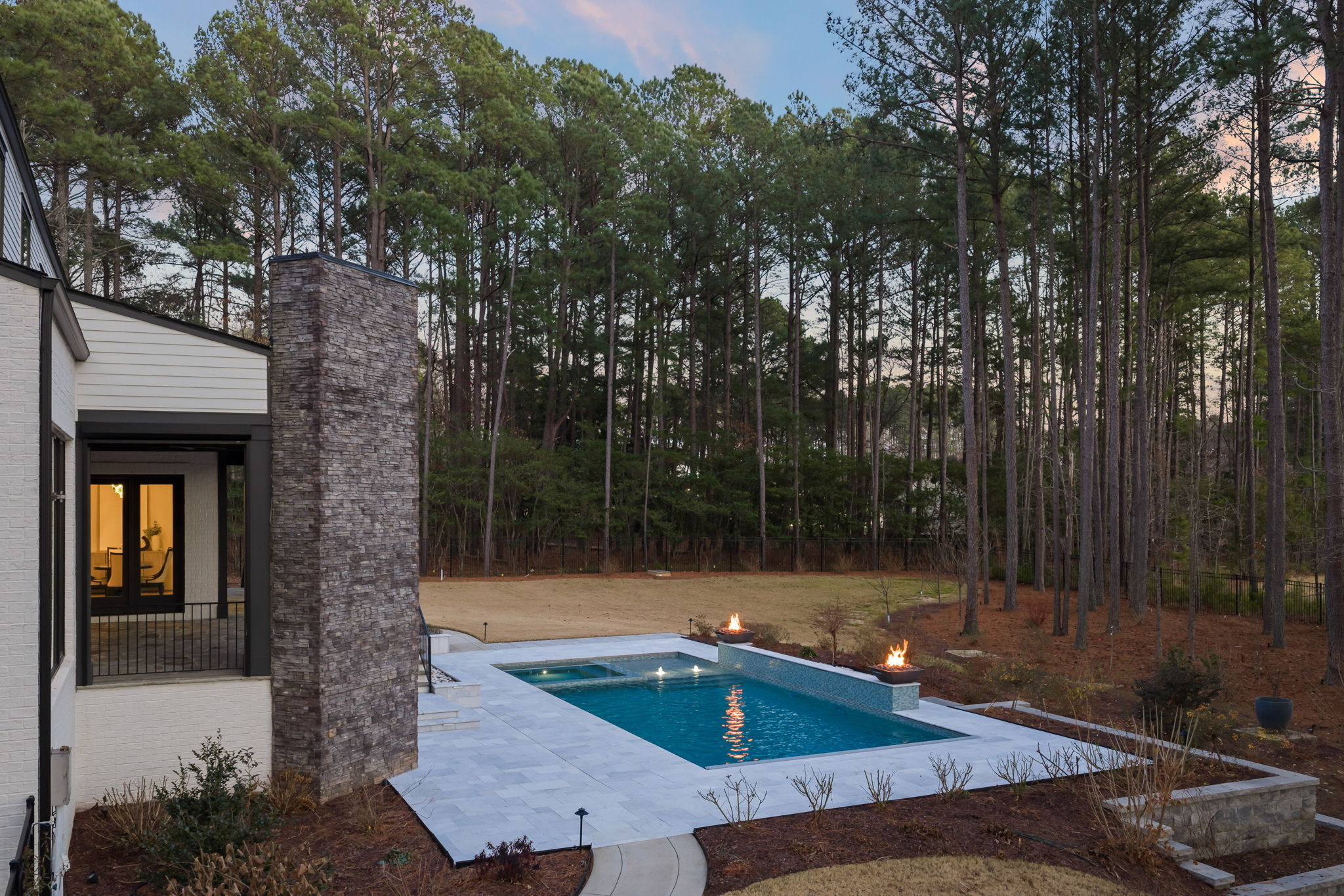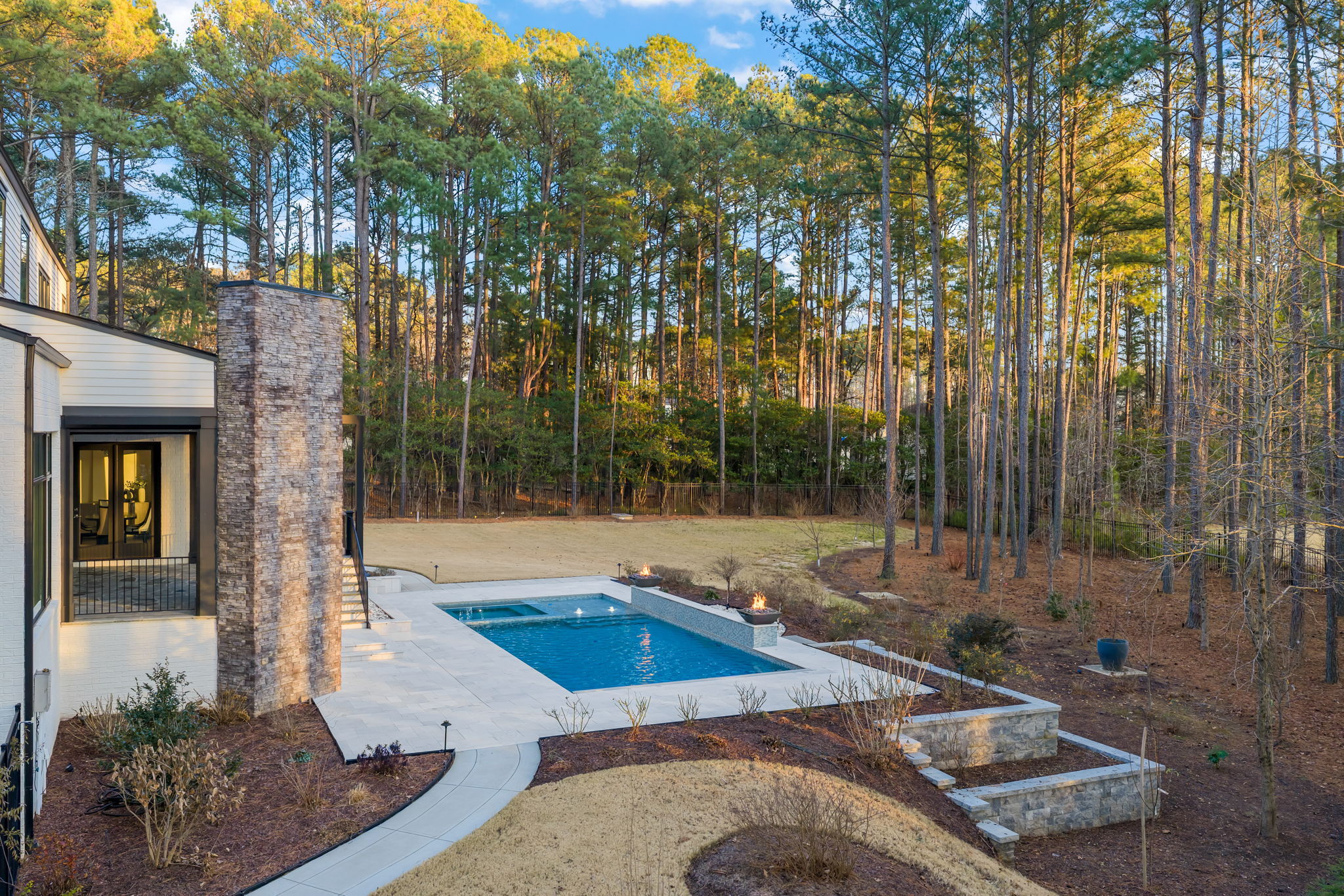Set on 1.3 private acres in Avalaire, one of Raleigh’s most prestigious luxury communities, this 7,643-square-foot custom estate offers an exceptional blend of privacy, architectural sophistication, and premier location near RTP, downtown Raleigh, and RDU. Designed for both grand entertaining and everyday living, the home features four ensuite bedrooms and lives like five or six with two primary suites—one on the main level and one upstairs—plus multiple flex spaces for offices, media, or guest rooms. Retractable glass doors open the family room to a bluestone porch and an extraordinary outdoor living experience, anchored by a heated saltwater gunite pool with spa, fire and water features, and retractable cover, alongside a raised outdoor entertaining area with built-in grill and automated pergola. A private elevator, expansive bonus room with wet bar, five-car garage, circular drive, and meticulously landscaped grounds complete this rare estate, delivering luxury, lifestyle, and unforgettable entertaining in one of the Triangle’s most coveted neighborhoods.