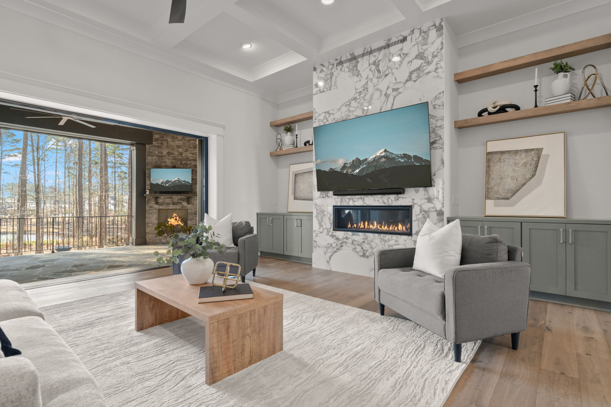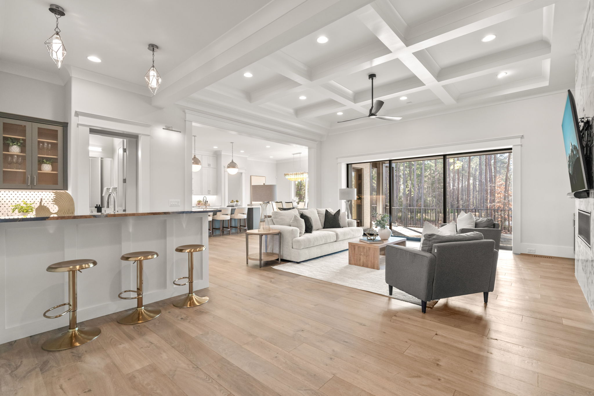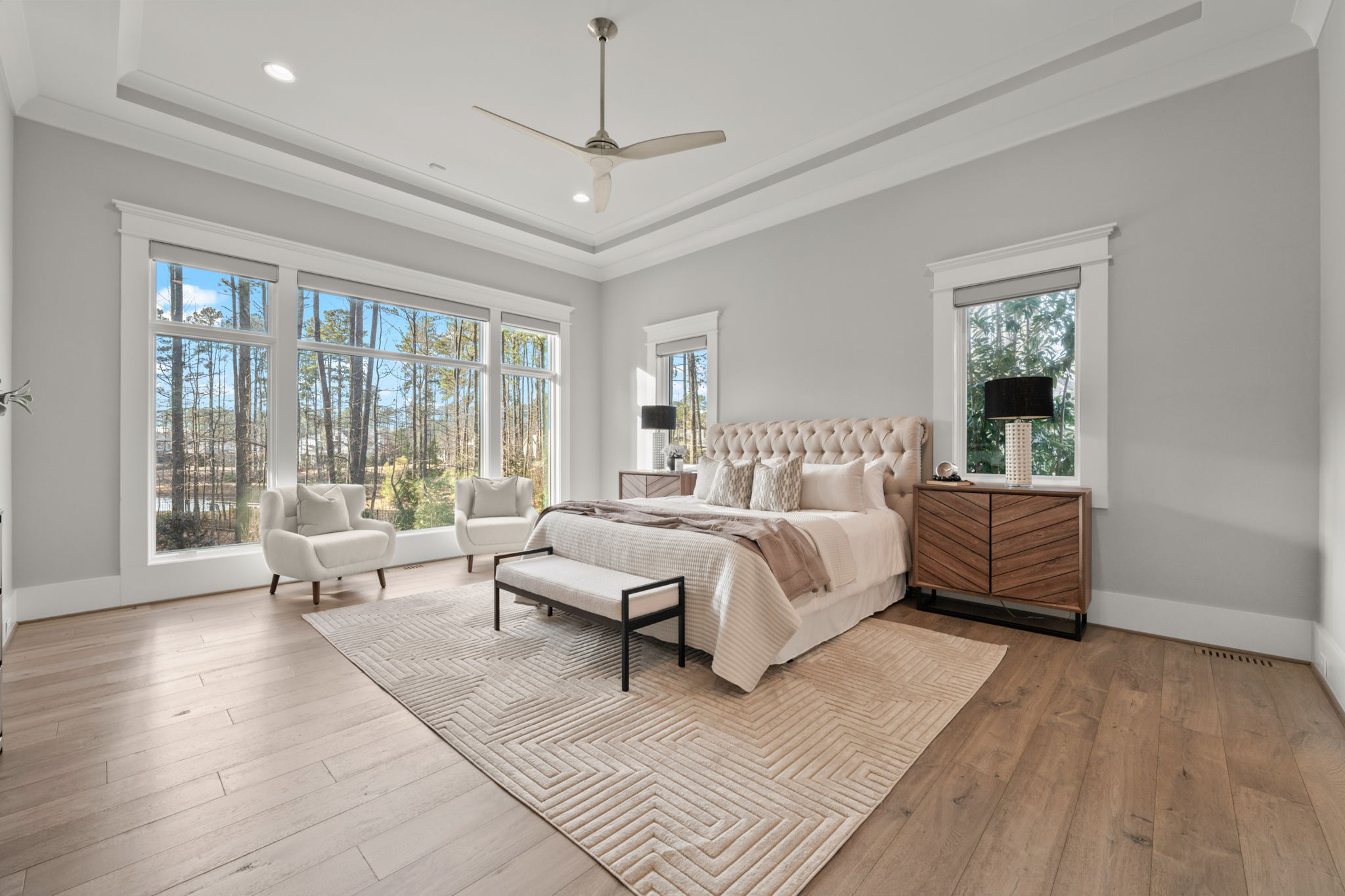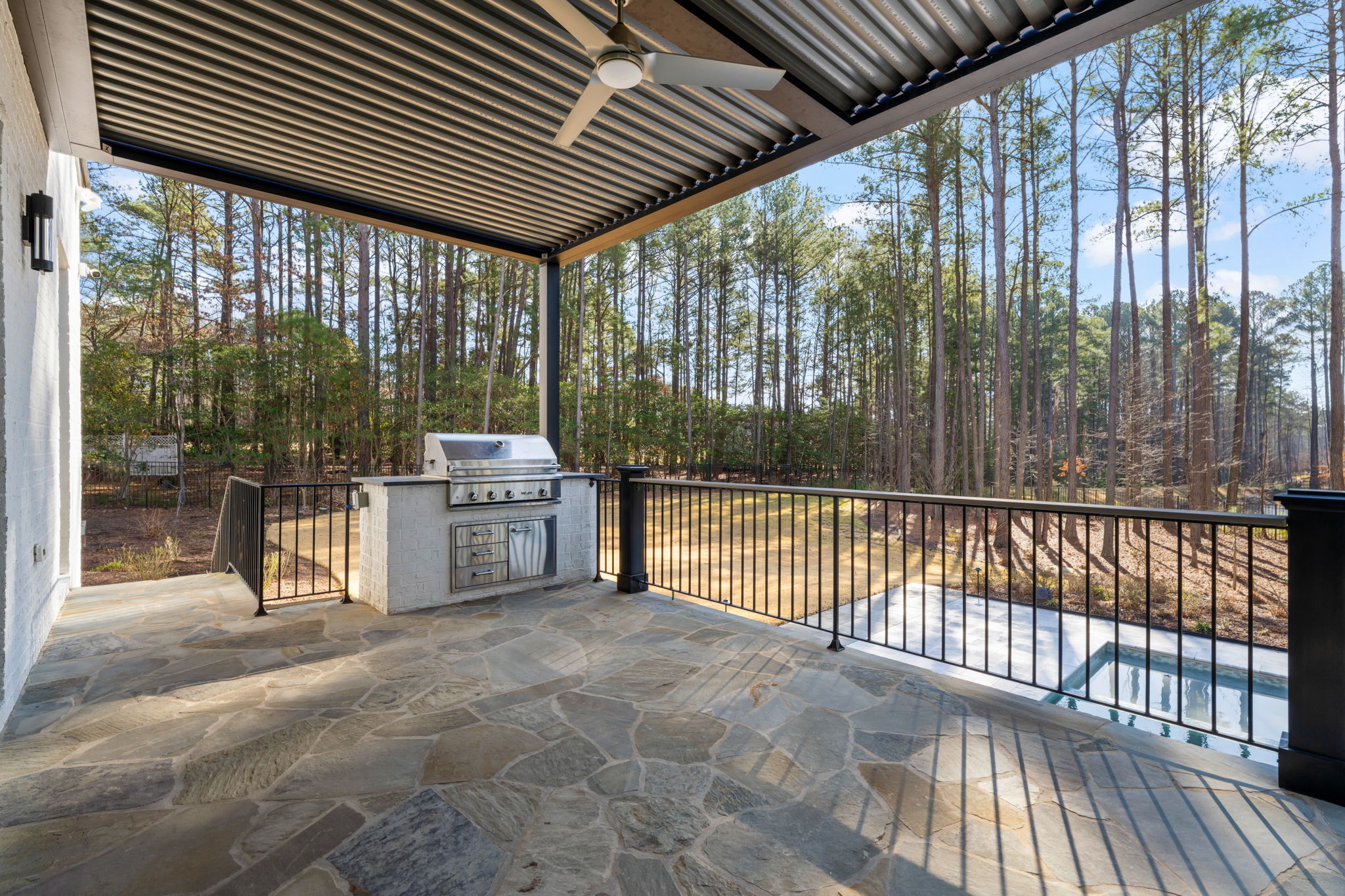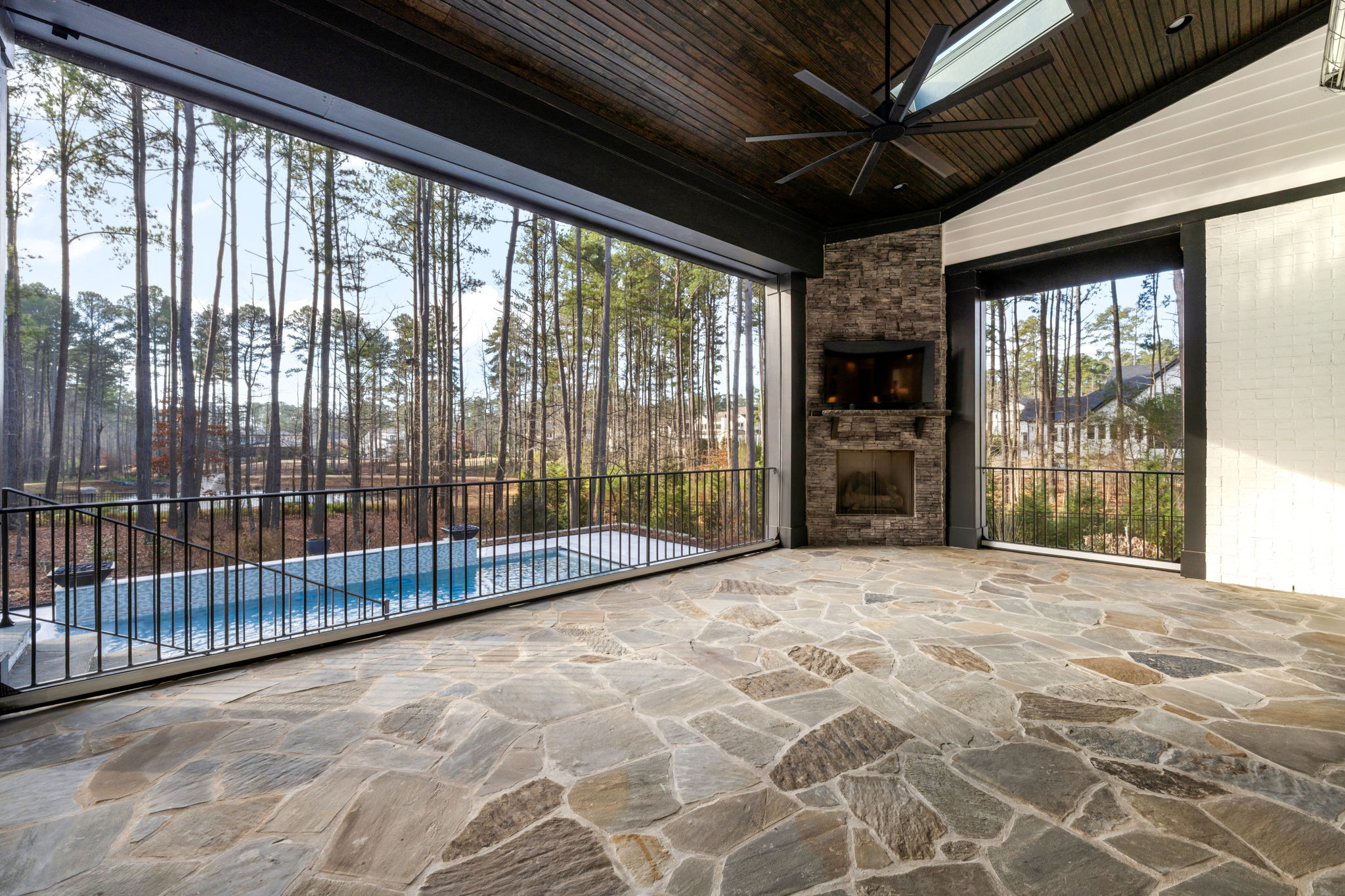 Set on 1.3 private acres in Avalaire, one of Raleigh’s most prestigious luxury communities, this 7,643-square-foot custom estate offers an exceptional blend of privacy, architectural sophistication, and premier location near RTP, downtown Raleigh, and RDU. Designed for both grand entertaining and everyday living, the home features four ensuite bedrooms and lives like five or six with two primary suites—one on the main level and one upstairs—plus multiple flex spaces for offices, media, or guest rooms. Retractable glass doors open the family room to a bluestone porch and an extraordinary outdoor living experience, anchored by a heated saltwater gunite pool with spa, fire and water features, and retractable cover, alongside a raised outdoor entertaining area with built-in grill and automated pergola. A private elevator, expansive bonus room with wet bar, five-car garage, circular drive, and meticulously landscaped grounds complete this rare estate, delivering luxury, lifestyle, and unforgettable entertaining in one of the Triangle’s most coveted neighborhoods.