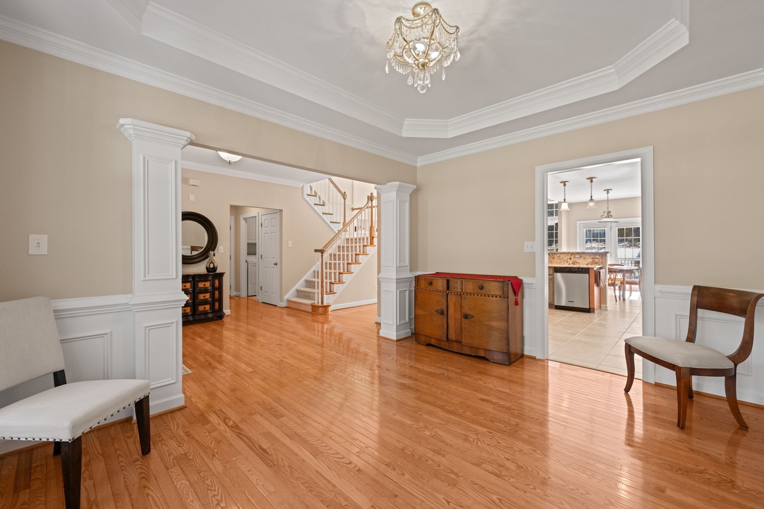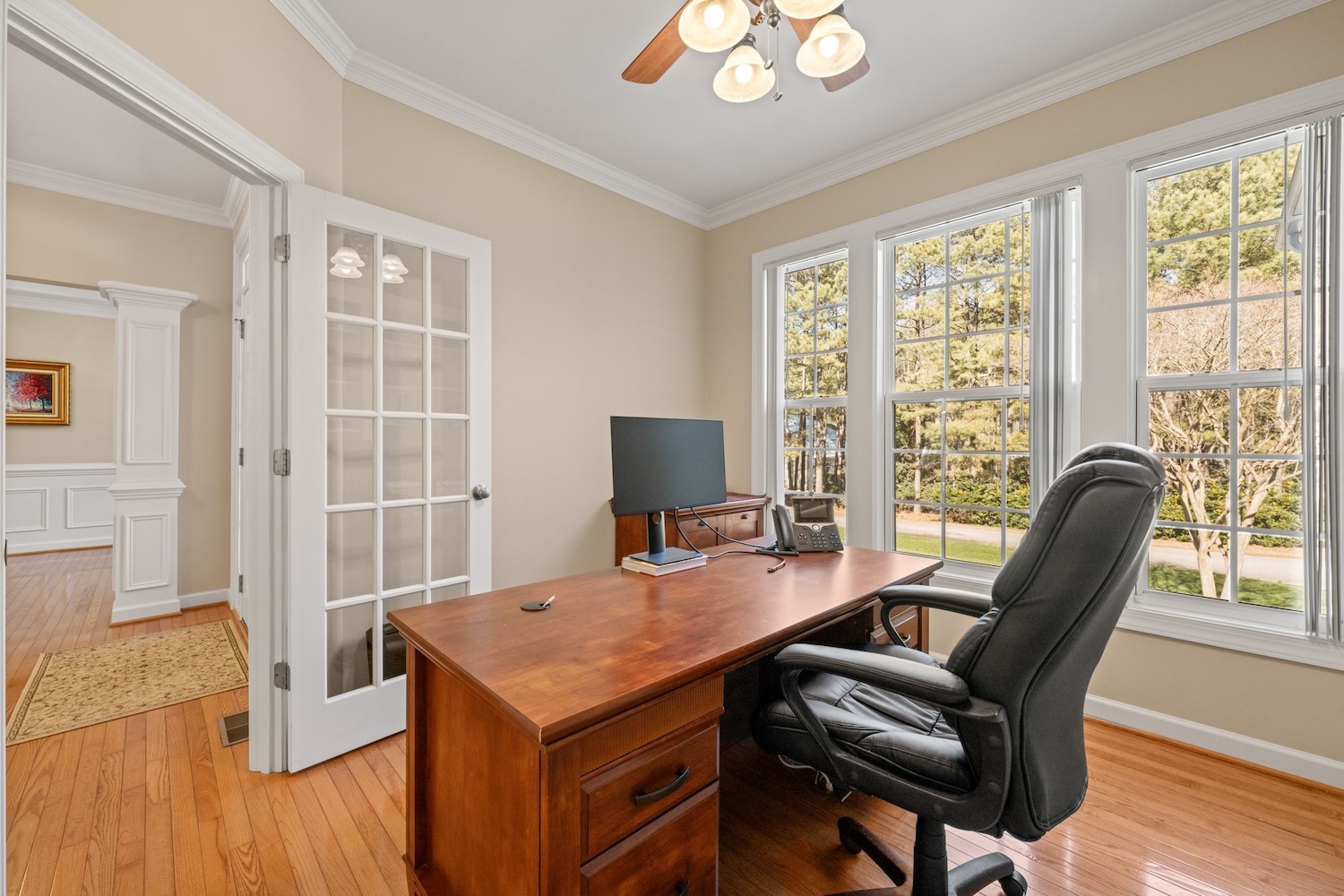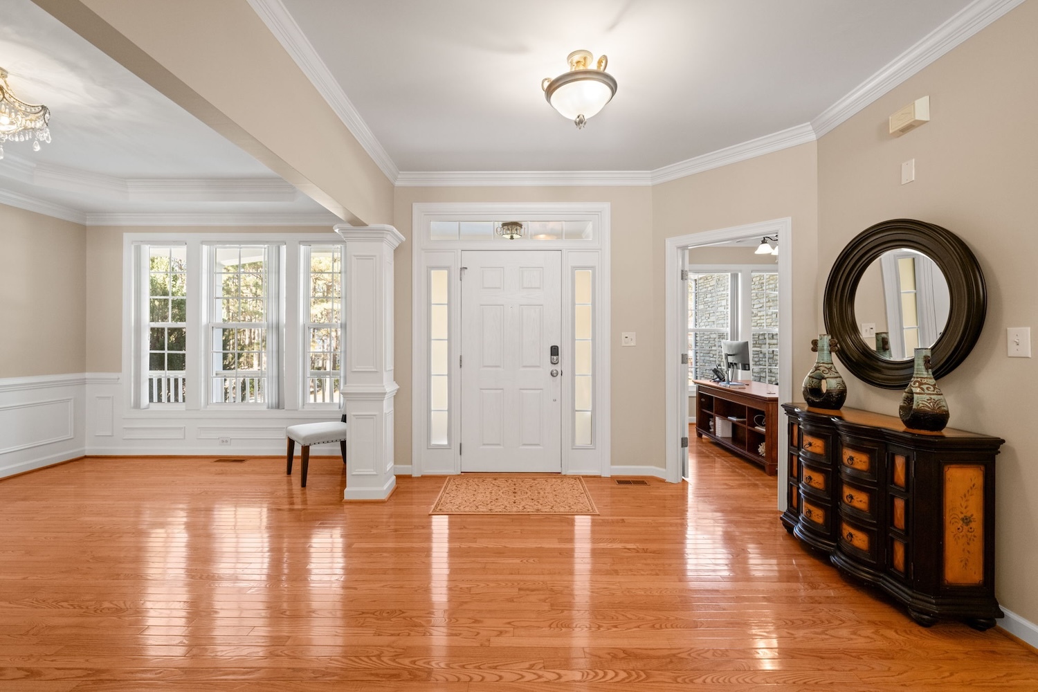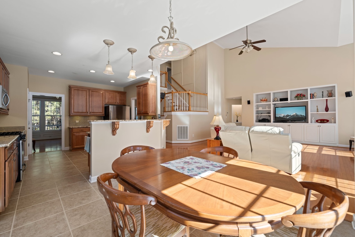 Welcome to 1009 Hidden River Ct, where refined comfort meets smart, long-term upgrades. Meticulously maintained and set on a bright, peaceful lot near Falls Lake, this home reflects over a decade of thoughtful improvements that truly set it apart. A fully paid solar system, brand-new downstairs HVAC (2024), and numerous major updates ensure both efficiency and peace of mind. Inside, you’ll find elegant wainscoting, custom cabinetry, and a main-level primary suite designed to feel like a private retreat. The kitchen blends beauty and function with granite countertops, a custom embedded glass backsplash, under-cabinet lighting, and an exterior-vented microwave—perfect for everyday living and entertaining alike. Outdoor spaces are just as impressive, featuring a rebuilt oversized deck (2021), a charming wraparound front porch, and easy access to the nearby Mountains-to-Sea Trail. Storage is exceptional, with walk-in attic space, a three-car garage, a 210 sq ft stand-up storage loft, and an 11-zone irrigation system. Immaculate inside and out, and positioned uphill for added privacy and confidence, this turnkey home offers a rare opportunity to own a beautifully upgraded residence in one of North Raleigh’s most sought-after locations.