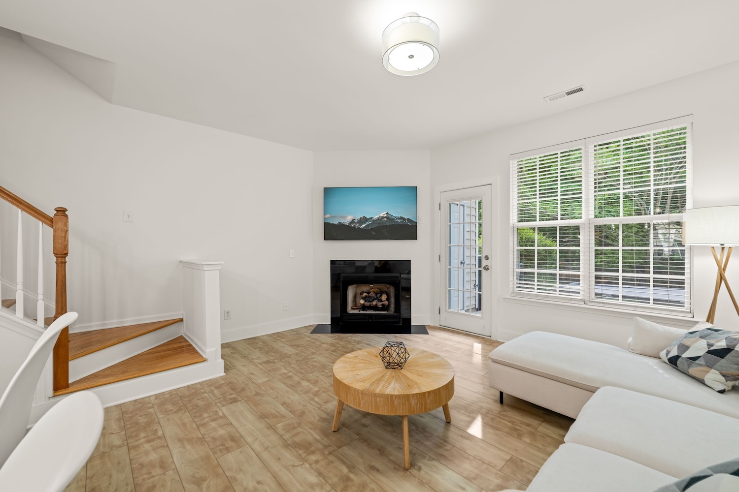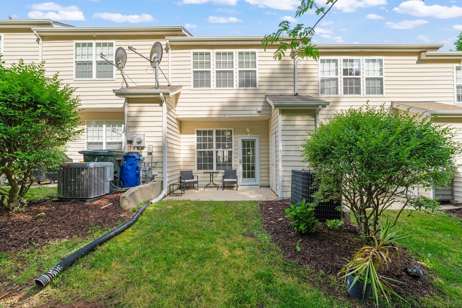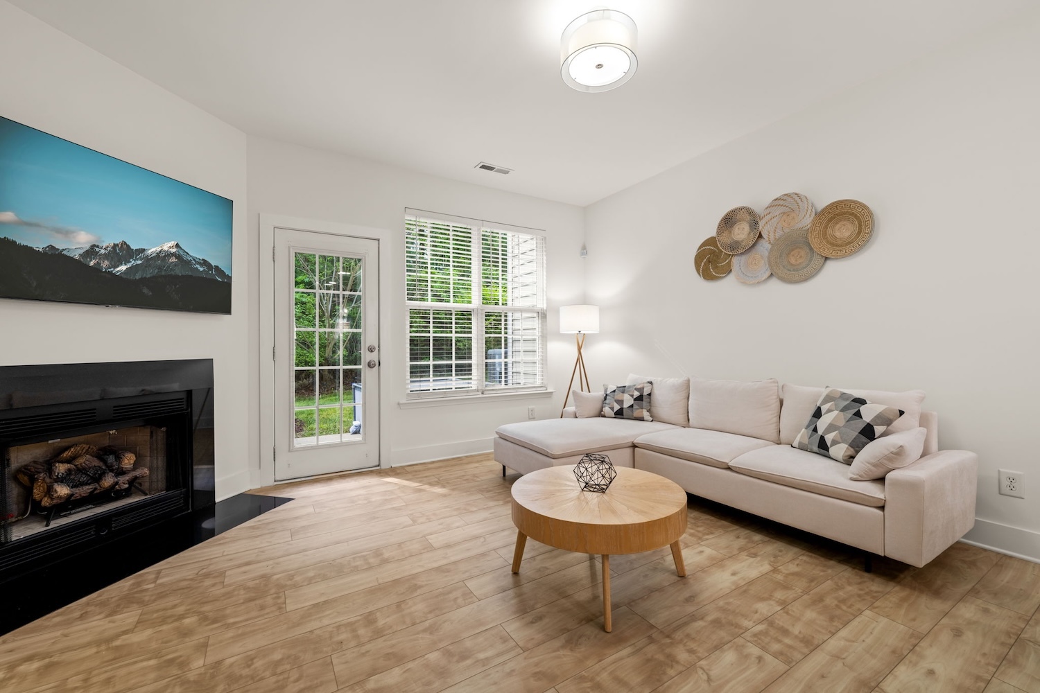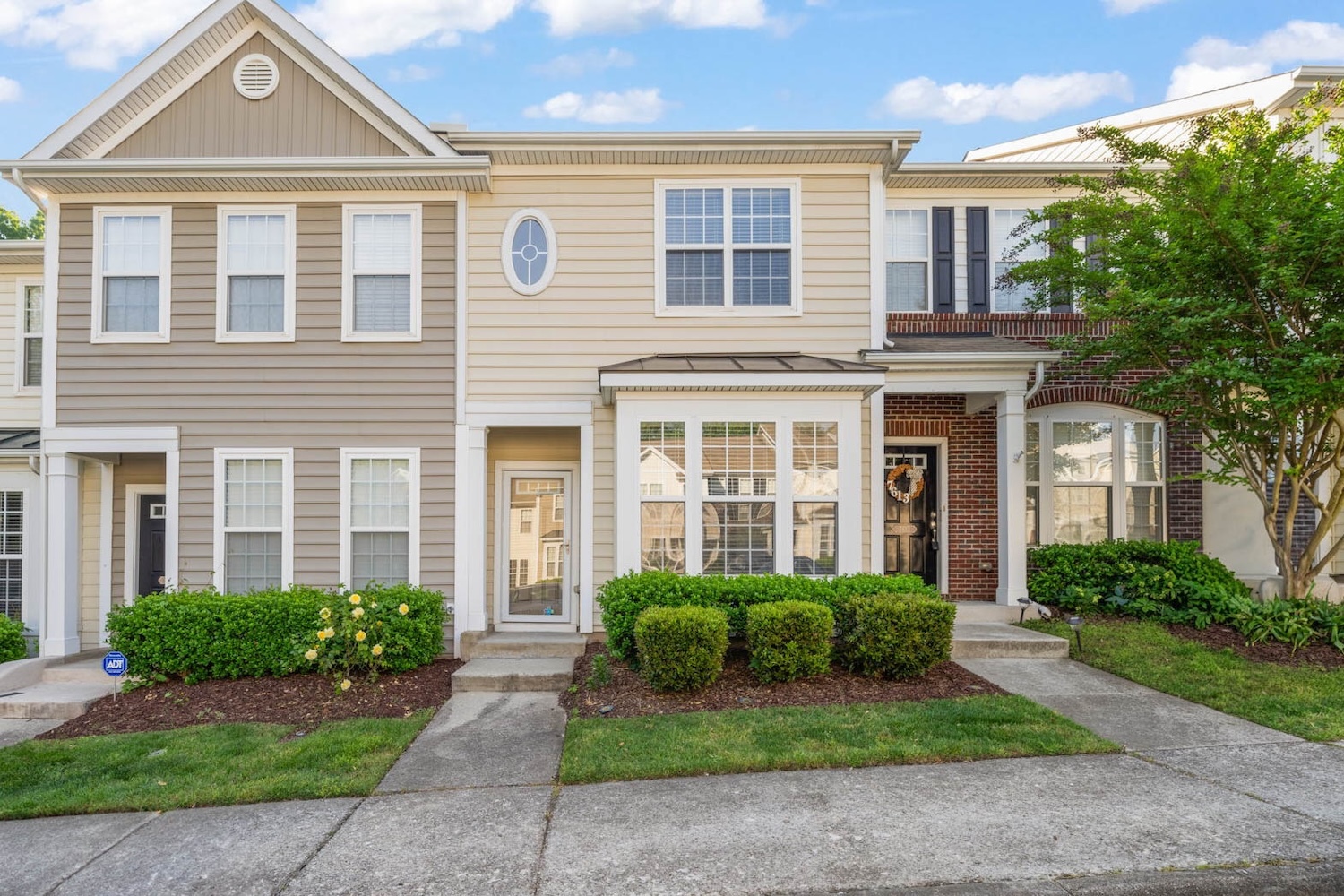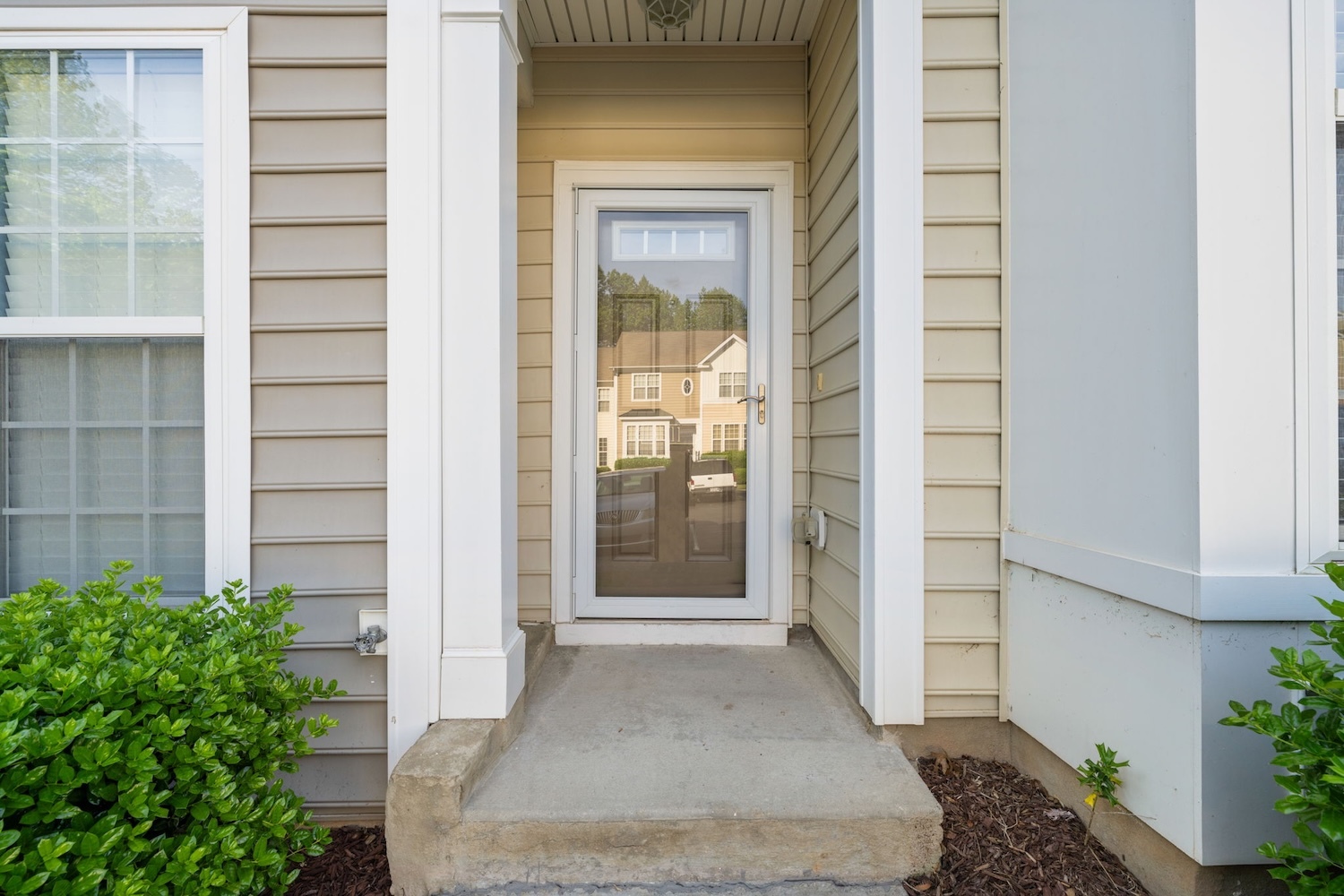 Stylish, move-in ready, and thoughtfully upgraded, this 2-bedroom, 2.5-bath townhome blends comfort, privacy, and convenience in a prime location. Each spacious bedroom features its own en-suite bath—ideal for roommates, guests, or creating your own personal retreat. On the main level, hardwood floors flow through the open dining and living areas, centered around a cozy corner gas-log fireplace. Step out to a private patio that overlooks a serene wooded area—perfect for quiet mornings or unwinding after a long day. The kitchen sets this home apart, having been widened for improved functionality and extra natural light. It boasts quartz countertops, a large center island with seating, and stainless steel appliances—a dream setup for home chefs. Upstairs, the primary suite features vaulted ceilings, a walk-in closet, and a beautifully updated bathroom with a fully tiled shower, river rock flooring, and modern fixtures. Located just steps from the community pool and minutes from Brier Creek, RDU Airport, and I-540, this home combines easy living with unbeatable access. HVAC recently serviced, and a one-year home warranty is included for added confidence. This home is truly a standout—don’t miss your chance to see it.