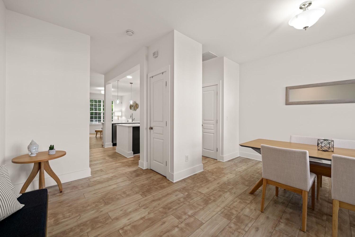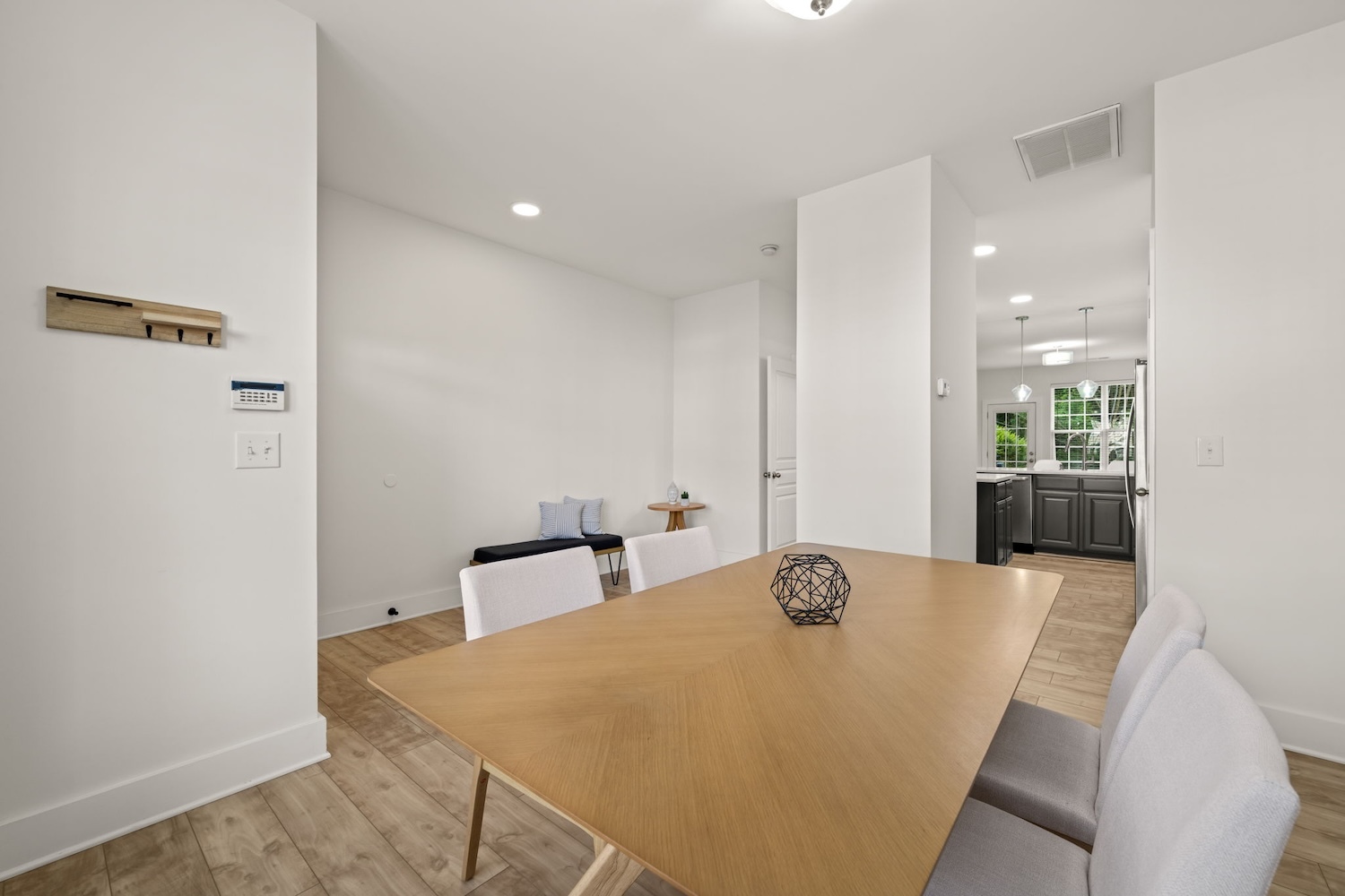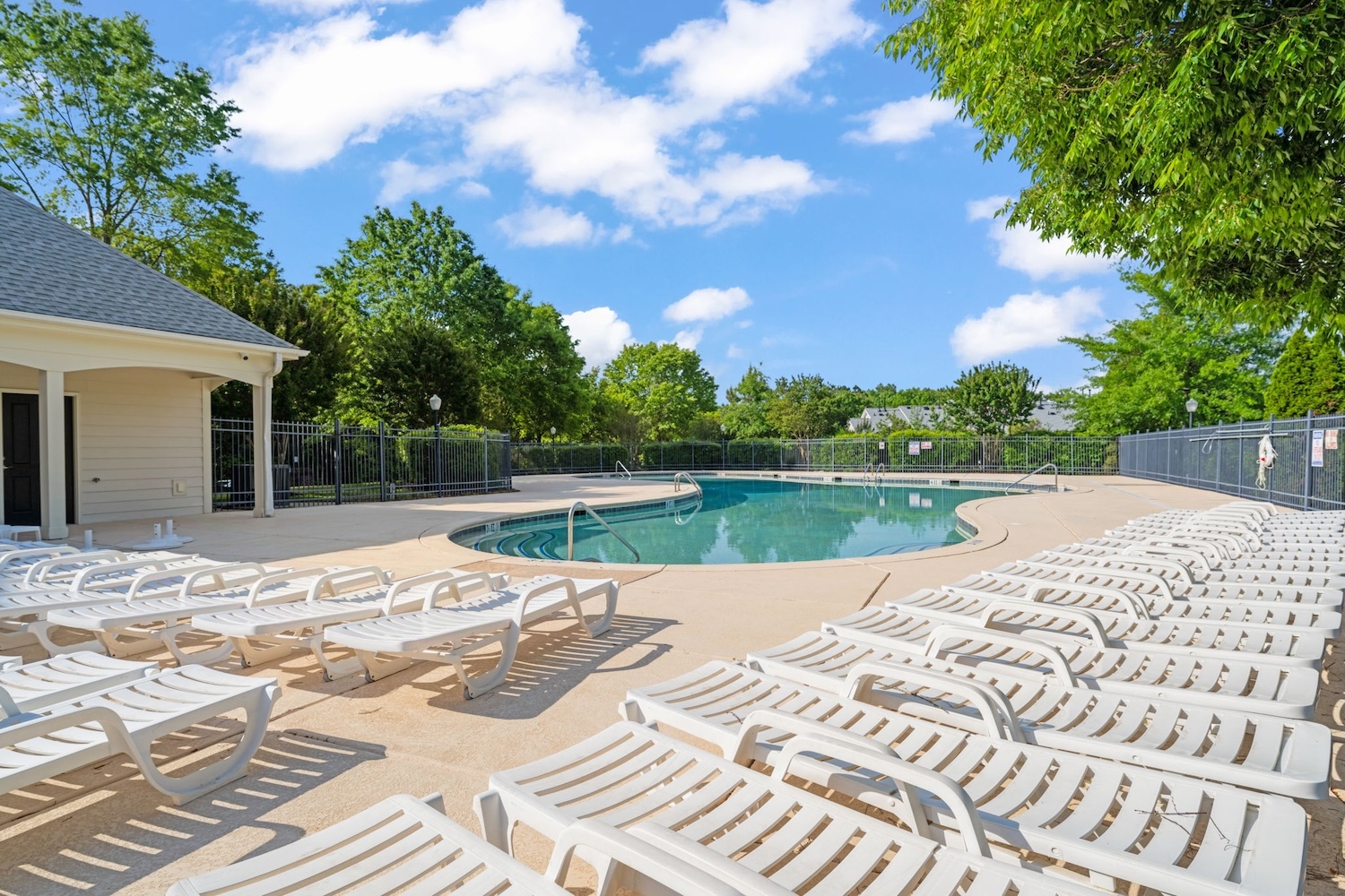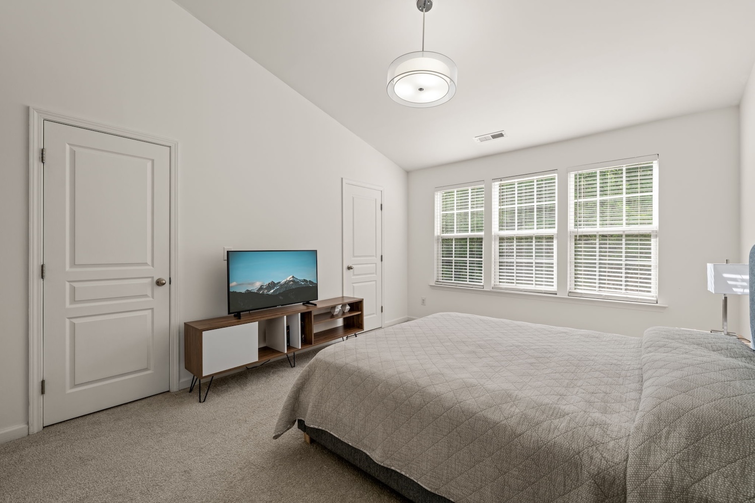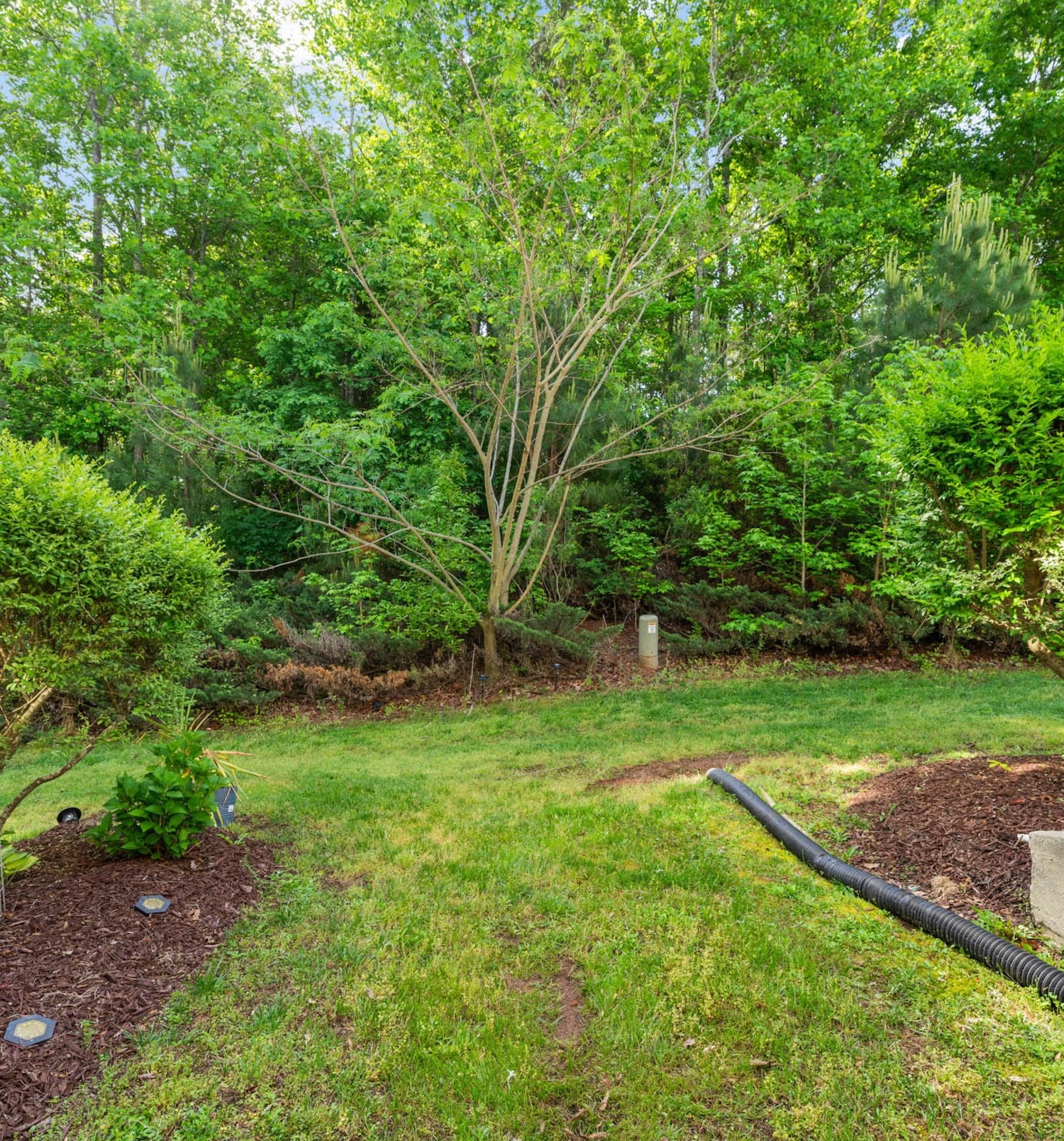 Stylish, move-in ready, and thoughtfully upgraded, this 2-bedroom, 2.5-bath townhome blends comfort, privacy, and convenience in a prime location. Each spacious bedroom features its own en-suite bath—ideal for roommates, guests, or creating your own personal retreat. On the main level, hardwood floors flow through the open dining and living areas, centered around a cozy corner gas-log fireplace. Step out to a private patio that overlooks a serene wooded area—perfect for quiet mornings or unwinding after a long day. The kitchen sets this home apart, having been widened for improved functionality and extra natural light. It boasts quartz countertops, a large center island with seating, and stainless steel appliances—a dream setup for home chefs. Upstairs, the primary suite features vaulted ceilings, a walk-in closet, and a beautifully updated bathroom with a fully tiled shower, river rock flooring, and modern fixtures. Located just steps from the community pool and minutes from Brier Creek, RDU Airport, and I-540, this home combines easy living with unbeatable access. HVAC recently serviced, and a one-year home warranty is included for added confidence. This home is truly a standout—don’t miss your chance to see it.